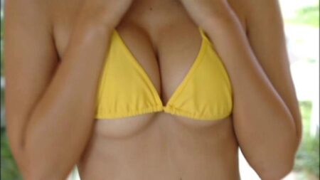 黄色ビキニで登場、元気に動き回っておっぱいを揺ら