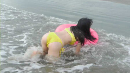 黄色水着で登場