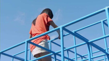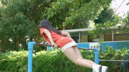 ミニスカで鉄棒、パンチラしそうな場面は直前でカット