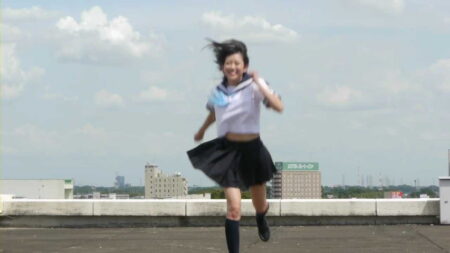 ミニスカートヒラヒラさせながらダッシュ