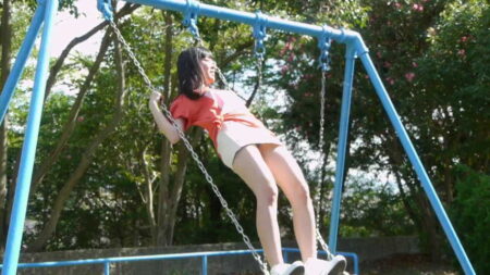 ブランコに乗って、黒パンチラ