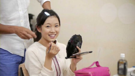 楽屋で浴衣に着替える