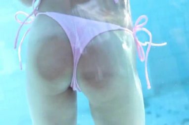 プールの透明な場所でお尻をムニュと押しつける