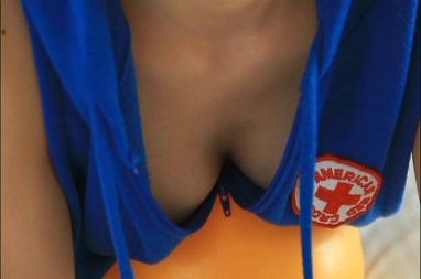 太ももを揺らしてマッサージするとおっぱいユラユラ、疑似セックスぽくていい