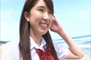 海辺を制服で登場