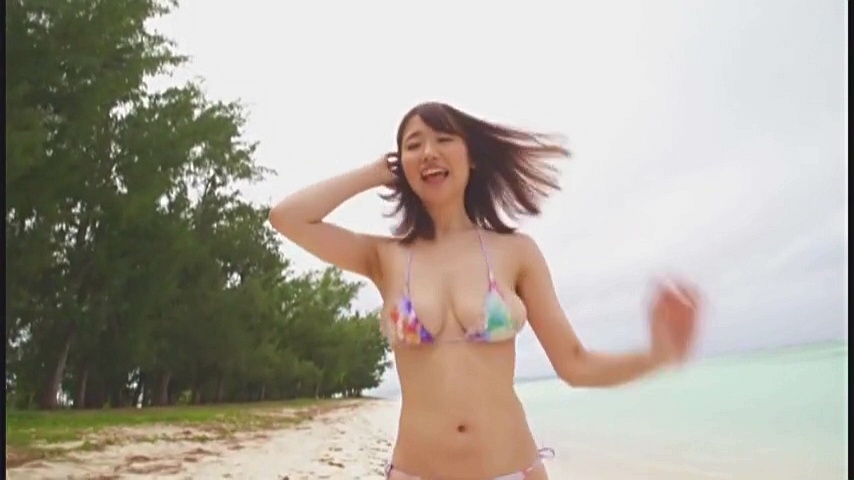 ビーチをビキニで登場、走って巨乳をユサユサ 「うふふ えへ」