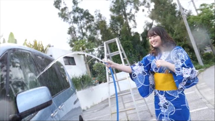 浴衣で登場 「車洗うの手伝ってあげるね」