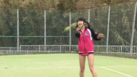 ジャージ姿で登場「一緒にテニスしよう」かわいいアニメ声 結構上手い、フォームが決まってる