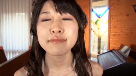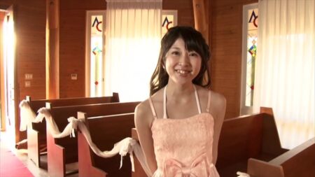 ピンクのワンピースで登場 「すごく綺麗な教会だね」「こんな所で結婚式あげたいな」「練習してみようか」