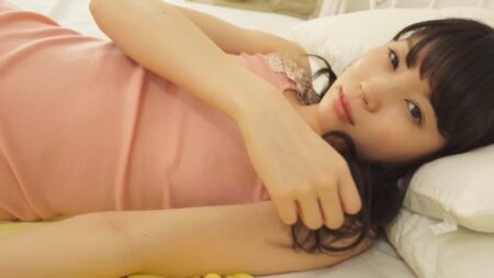 ベッドの上キャミ姿でお目覚め 「おはよう 本当に一緒に寝れたんだね うれしいよ」