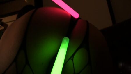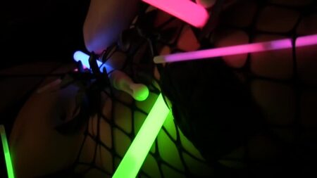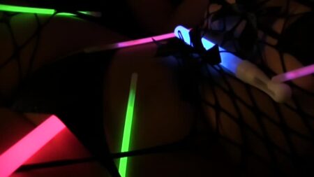 網タイツで登場、身体の上にペンライト?コンサートライト?を置くが暗くてよく分からない