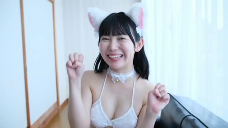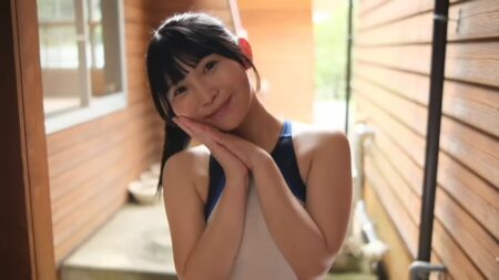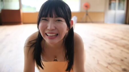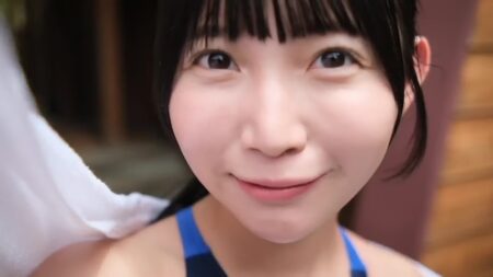 「今日はサードDVDの撮影に来てます いぇ~い」「人生初 競泳水着です」「幼馴染みの うふふふふ イチャイチャです うふふふふっ」すごくしゃべっててケラケラ笑ってて明るいです