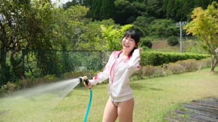 ジャージで登場、水撒き、良い感じでむっちりしてる太ももが良い