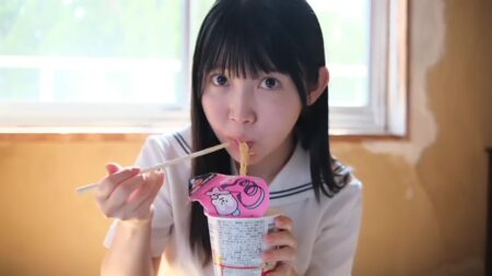 JK制服で登場「お腹すいた~」アメかアイスかと思っていたらカップ麺「」勉強って飽きるんだよなぁ そうだ