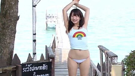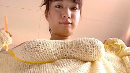 黄色ニットに縄跳び持って登場、縄跳びでおっぱいを持ち上げる