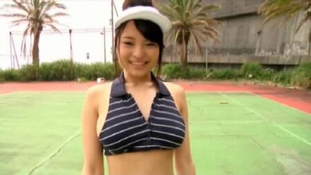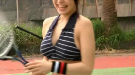爆乳を揺らしながらテニス、ハミ乳がプルプル