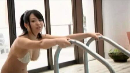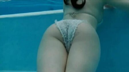 プールの中でギュッと寄せて谷間 「何?ふふふ」(一瞬BGM無し)ちょっと声が低い