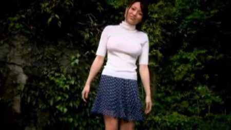 ニットセーターで登場、普通の格好の方が巨乳なのが分かる